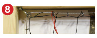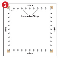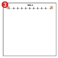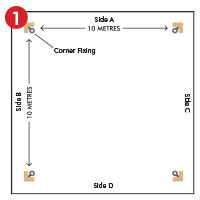| Drill holes and fit corner fixings where the net turns a corner. | Drill holes and fit intermediate fixings at 1m intervals in a straight line between the corner fixings. | Run 10m of wire rope through the fixings of one side. |