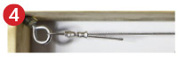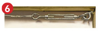 | Attach one end of the wire rope to a corner fixing by looping the wire then secure with 2 ferrules (each crimped twice) or 2 wire rope grips. | Run 10m of wire rope through the fixings of one side. | Hook an open barrel strainer to other corner fixing, thread the free end of the wire through the eye of the barrel strainer pull the rope tight. Secure with 2 ferrules or wire rope grips, then close the strainer to tighten rope. |