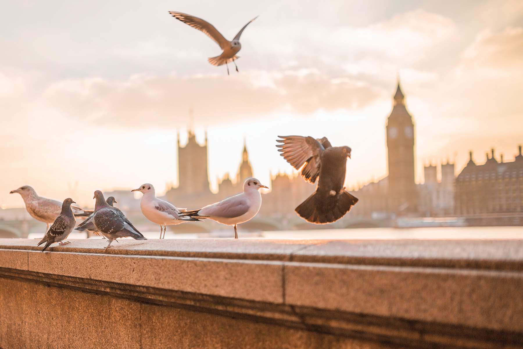 gulls pigeon starling sparrow