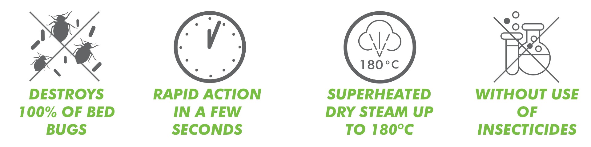 During the delivery phase, the steam is mixed with HPMed detergent to eliminate the characteristic smell of bed bugs and melt the gluey substance which binds the eggs to surfaces.