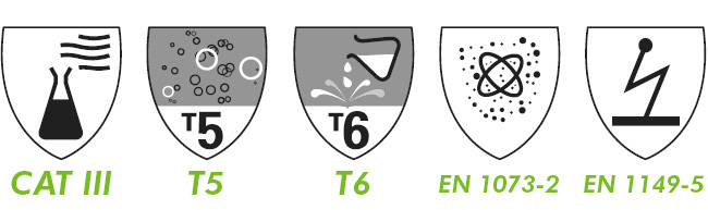 Chemical protective clothing, Category III, Type 5 and 6