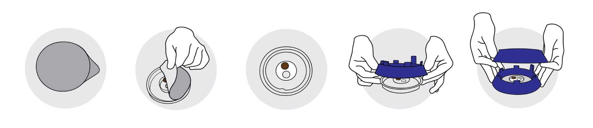 Peel the foil lid from the refill and click the refill into the base of the trap from underneath. Line up the trap so that the tether system on the base fits through the hole in the plastic lid and click together. The Xlure MST should be placed on a flat surface. In small rooms one trap will be sufficient. In larger areas e.g., factories, kitchens or storage facilities, traps should be place approximately 8-10 metres apart in a grid formation. More traps may be required in buildings with more than one level, where there are obstacles or if there are heavy infestations.